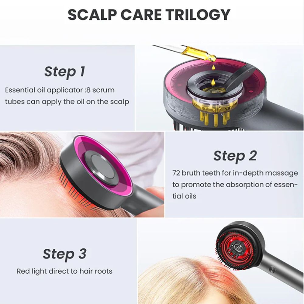 Scalp Trilogy is the ultimate solution for a healthier, more vibrant scalp! Say goodbye to dryness, itching, flakiness, and hair loss issues with this innovative scalp massager.
