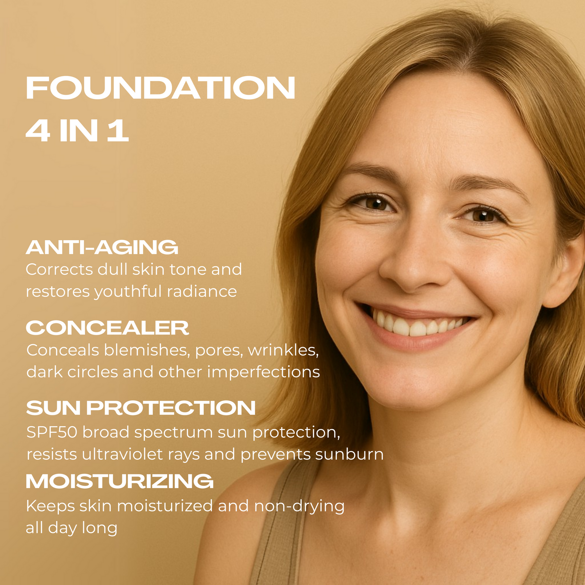 In addition, the Mature Skin Foundation ensures that your makeup will be done quickly and that your skin looks amazing!